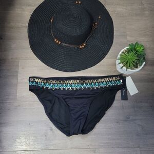 Beaded bikini bottom featuring tonal stitching and elasticized waistband