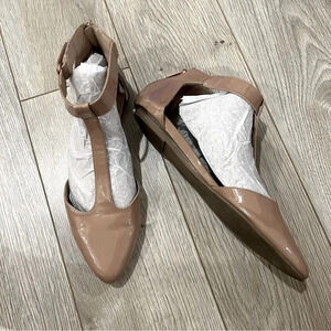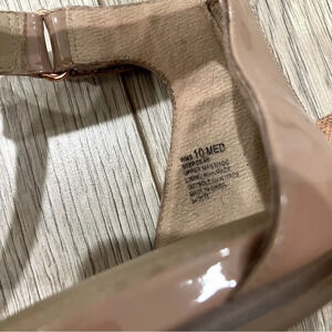 Patent nude sandals from Kenneth Cole. Signs of wear but still in great condition. Mark on toe as shown in first photo.