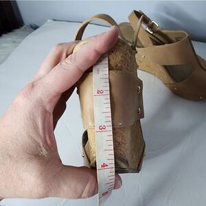 Kenneth Cole Reaction Tan Wedge Sandal Size 10 open toe strappy back