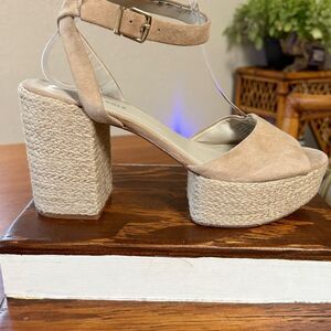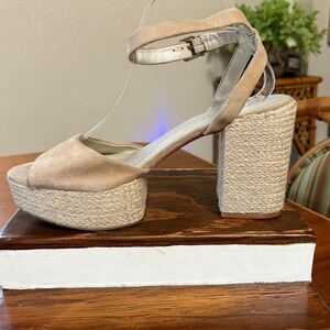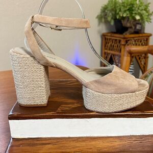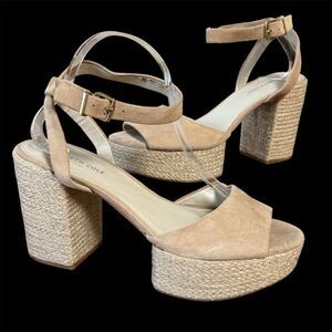 Kenneth Cole Women's Phoenix High Block Heel Platform Sandals Beige Size 10