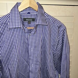 Kenneth Cole reaction, purple check, long sleeve shirt, size medium