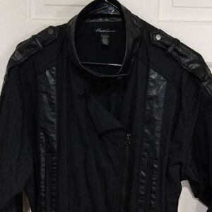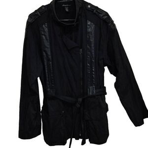 Cool Kenneth Cole 80s Retro coat, light weight, soft leather trim and accents, waist tie, fun