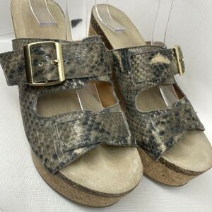 Kenneth Cole Reaction Wedge Cork Python Print Slide Platform Sandals Gray Women's Size 7.5