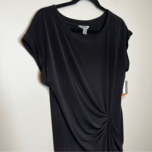 Kenneth Cole Reaction Black Short Sleeve Ruched Asymmetrical Dress Size Medium. A go to black dress with beautiful ruching detail for a flattering look. New with tags.