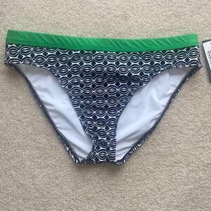 Cute bikini bottoms from Kenneth Cole Reaction. Great abstract design with a pop of green color on the waistband.