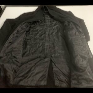 Mens black cotton blend pea coat by Kenneth Cole Reaction. Good preowned condition. Mens size XXL.