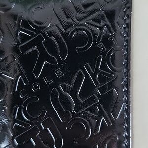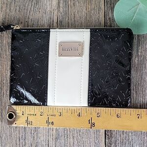 Black and white patent leather with logo print fully lined pouch wristlet. Great pre-owned condition