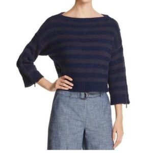 Kenneth Cole Striped Zip Sleeve Cropped Sweater