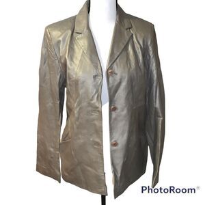 Kenneth Cole, hundred percent leather pewter colored jacket with lining