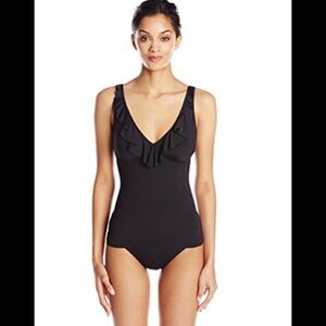 I love this beautiful taking me! It has a feminine ruffle around the neck with adjustable straps. Removable soft cups. The bottoms are beautiful. Fully lined with ruching on the sides and fold over flap.