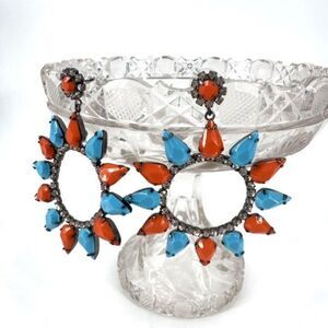 Kenneth Jay Lane Womens Large Circle Crystal Drop Dangle Earring Turquoise Coral