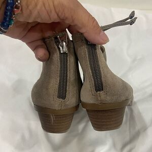 Kenneth Cole Reaction tan faux suede zip back ankle boots size 6.5