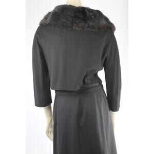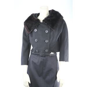Kennie Belted Black Wool Skirt Suit Mink Fur Collar Jacket Vintage Set Size S