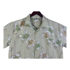 Kennington California Mens Hawaiian Shirt Large Tan Floral Camp Club Vintage