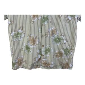The Kennington California Men's Hawaiian Shirt in size Large features a vintage tan floral design, perfect for a casual or party occasion. Made of a breathable polyester and cotton blend, this button-up shirt has a collared neckline, short sleeves, and a spread collar style. With a chest size of 48 inches, it offers a regular fit for all seasons. The Hawaiian theme adds a touch of tropical flair, making it a stylish choice for any man's wardrobe.
