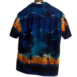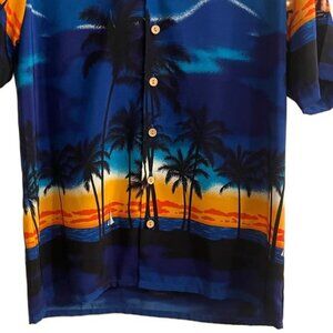 Kennington Ltd. Tropical Sunset Blue Casual Button Down Shirt, Large