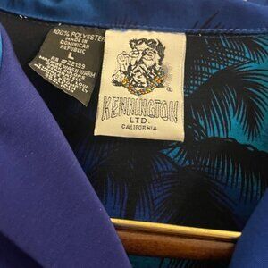 The Kennington Hawaiian Blue Button Down Shirt in size Large is a stylish and comfortable option for men looking to add a touch of tropical flair to their wardrobe. Made from polyester, this collared shirt features a palm tree graphic print on a blue background, perfect for casual occasions or parties. Its relaxed fit and breathable fabric make it a great choice for warm weather, while its vintage style adds a unique touch to any outfit. Easy to care for with machine washable instructions, this shirt is a versatile and eye-catching addition to any collection.