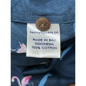 The Kenny Flowers Shirt for men in size Large features a blue flamingo print design, perfect for a tropical or Hawaiian-themed occasion. This limited edition button-up shirt is made of breathable cotton material and has a regular fit with a button-down collar. Ideal for travel or casual wear in the summer, fall, or spring seasons, this shirt is machine washable for easy care. With its unique character and beachy vibe, this Kenny Flowers shirt is a stylish addition to any man's wardrobe.