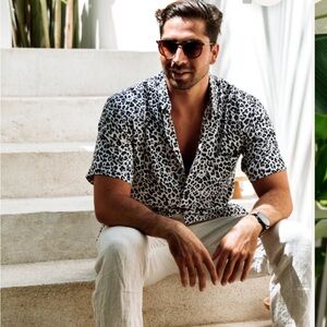 Experience effortless style with this Kenny Flowers casual button down shirt, featuring a bold black and white leopard print. Its lightweight fabric and relaxed fit make it perfect for warm weather, offering both comfort and versatility for any casual occasion.