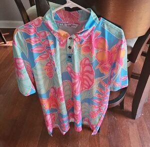 Colorful polo with bold floral patterns. Ideal for lively outings.