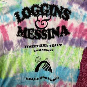 Kenny Loggins and Jim Messina Together Again Tour Tshirt size 2x generally measures 25 inches pit to pit and 32 inches long amazing graphic on both sides one a kind tie dye amazing rock tshirt for fans of the legendary artists Kenny Loggins and Jim Messina