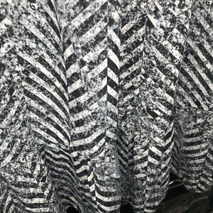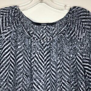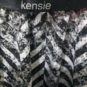 This 3/4 sleeve top from Kensie has a great ruffled sleeve and bottom in colors pf black, white, and grey.