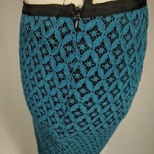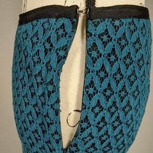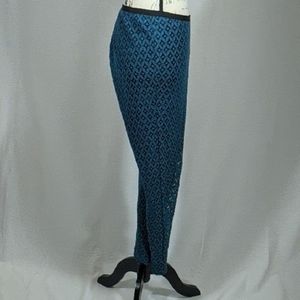 Teal Crochet Overlay Black Lining Straight Leg Pants