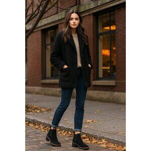 A classic silhouette meets a rugged edge in this sleek, chunky ankle boot, crafted in soft faux suede. Designed with a refined almond toe and tonal gussets, it’s finished with a convenient side zipper and a pull tab at the heel for easy on-and-off wear. The low block heel and treaded outsole offer everyday traction without compromising style. A cushioned footbed ensures comfort, while the lightweight construction makes these boots ideal for transitioning between seasons. Subtle contrast stitching at the welt adds a touch of polish to this versatile pair, perfect for cool-weather layering. Effortlessly pairs with minimalist, commuter-core, capsule, or urban casual aesthetics.