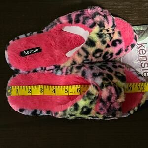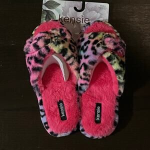 Kensie Animal Print Memory Foam Slippers Pink Rainbow Women's size 9