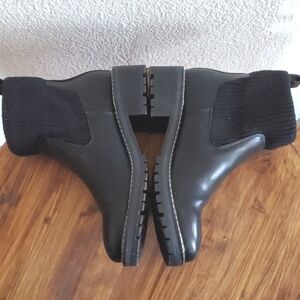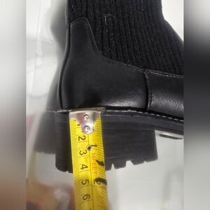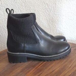 Kensie- Black Boots Slip On Knit upper leather lug Neutral comfort NEW! Sz.7