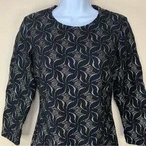 Kensie Black Gold Silver Thread Midi Dress Stretch Event Party Cocktail Size 2
