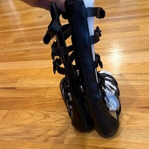 Elevate your look with these striking black gladiator sandals. Knee-high design for bold style.