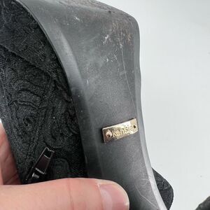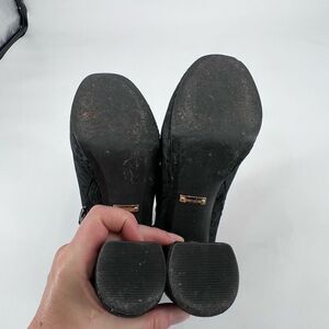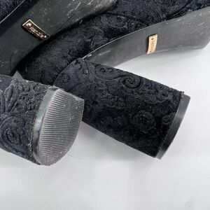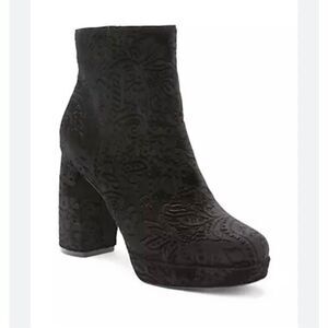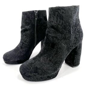 Kensie Black Velvet Floral Emeline Block heel boot bootie size 8.5 Platform Goth
