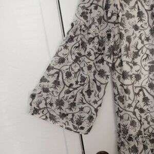 Measures (flat) approx. 18" across the armpits, 17" armpit to end of sleeve, 34" shoulder to hemline.