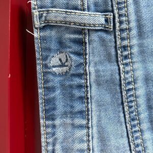 These stylish jean shorts by Kensie feature a trendy distressed design in a classic blue color. The frayed hem and deliberate rips add a casual, worn-in look perfect for everyday wear.