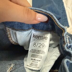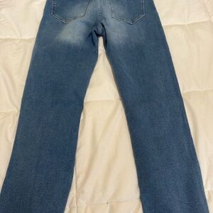 Trendy blue jeans with stylish rips. Straight leg design. Perfect for casual wear.