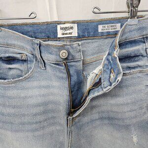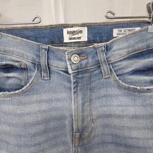 Kensie Blue Rustic Distressed Tapestry Cuff Boho Straight Leg Crop Jeans 4