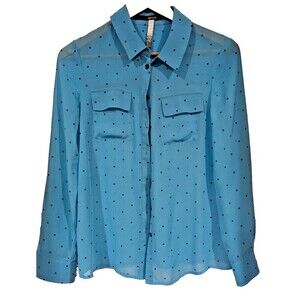 Kensie Blue with black polkadot long sleeve button down sz S Retro Career Office