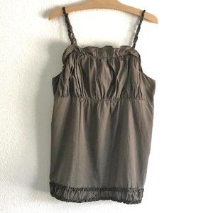 Stylish brown camisole by Kensie. Features delicate straps and gathered details. Perfect for layering or wearing alone.
