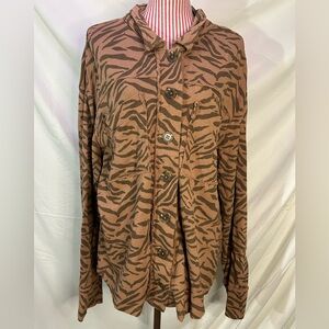 Kensie Brown Zebra Print Button Up Shacket 100% Cotton Fairycore Boho Size XL