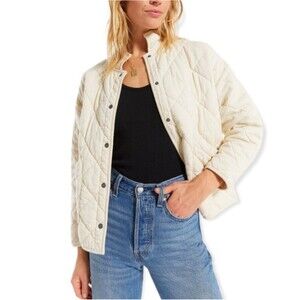 This lightweight puff jacket makes for the perfect transitional piece from cool to cold weather. This jacket features a drop shoulder and a stylish boxy fit. Made from a cotton/poly jersey knit fabric, we know you'll love all the details such as the collar, snap-front closure, and patch pockets.