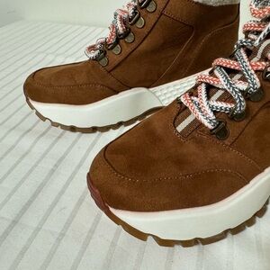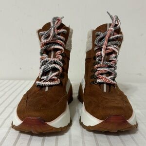 Kensie Crown Sherpa Lined Lace Up Boots Sneakers Tan Size 5M