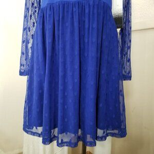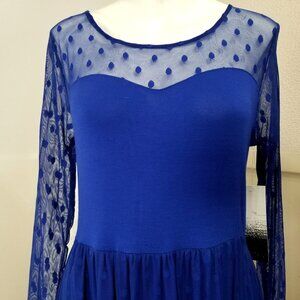 Kensie Dress M Blue Polka Dot Mesh Sheer Long Sleeve Mini Party Cocktail NEW