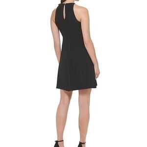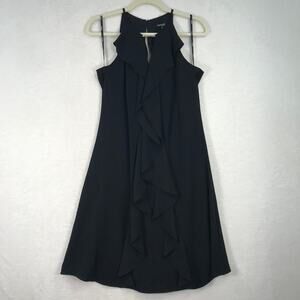 Kensie Dress Size 8 Black Mini Ruffle Pebble Crepe Halter Keyhole Sleeveless Shift A Line Sheath
