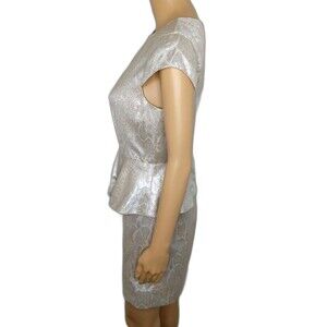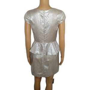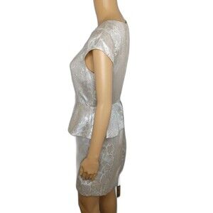Kensie Dresses Size 4 Metalic Sliver Animal Print Ruffle Zip Back Short Sleeve