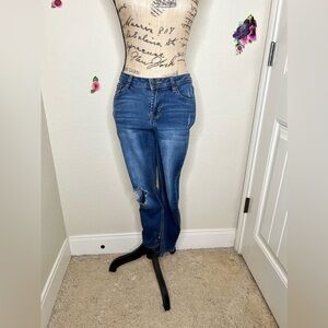 Kensie Effortless Ankle Mid Rise Distressed Style Medium Blue Jeans Size 26