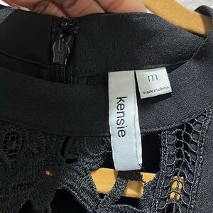 Kensie Elegant Black Lace Blouse Sheer Long Sleeves Sz M Whimsigoth witchy goth