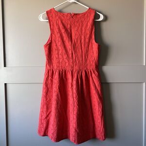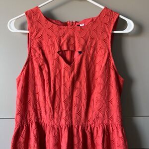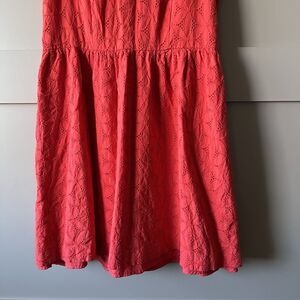 Kensie Eyelet Fit and Flare Mini Dress Women Medium Red Orange Cotton Zip Party