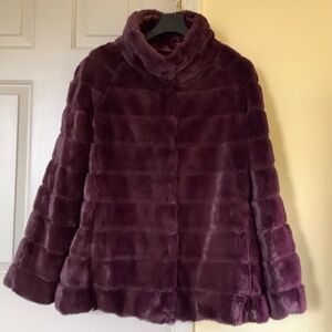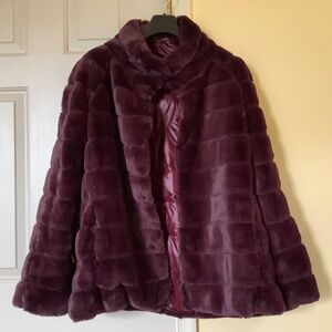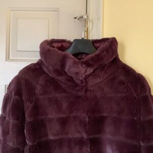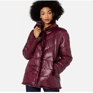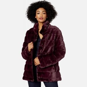 Kensie Faux Fur Reversible Quilted Jacket Coat Burgundy SZ XL