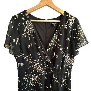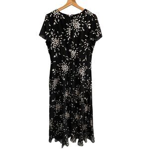 Kensie Foil Print Chiffon Maxi Dress Size 12 Black Gold Hi-Low Whimsigoth Fairy